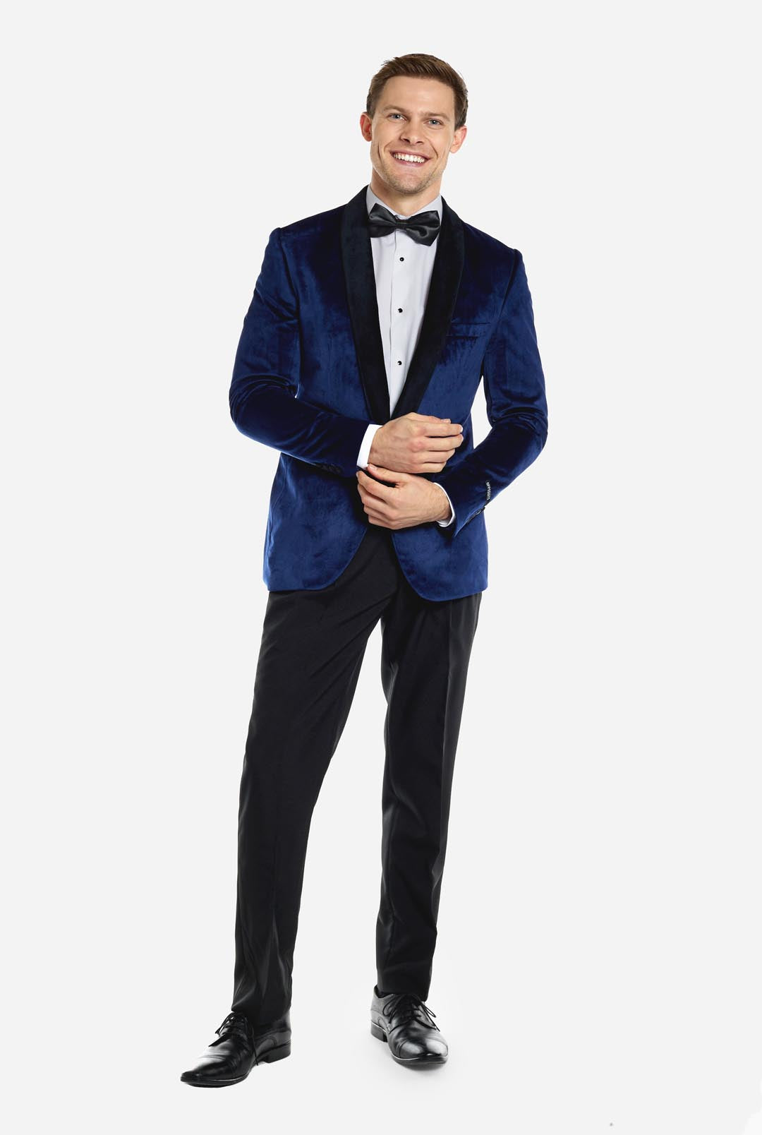 Verfijnd, stijlvol en ook nog eens makkelijk te dragen; dit donkerblauwe fluwelen smoking jasje met een zwarte revers is een item dat elke gentleman in zijn garderobe zou moeten hebben. Het zachte OppoSuits Deluxe item is je beste vriend tijdens de feestdagen (en op elke andere gelegenheid, want hij is tijdloos).