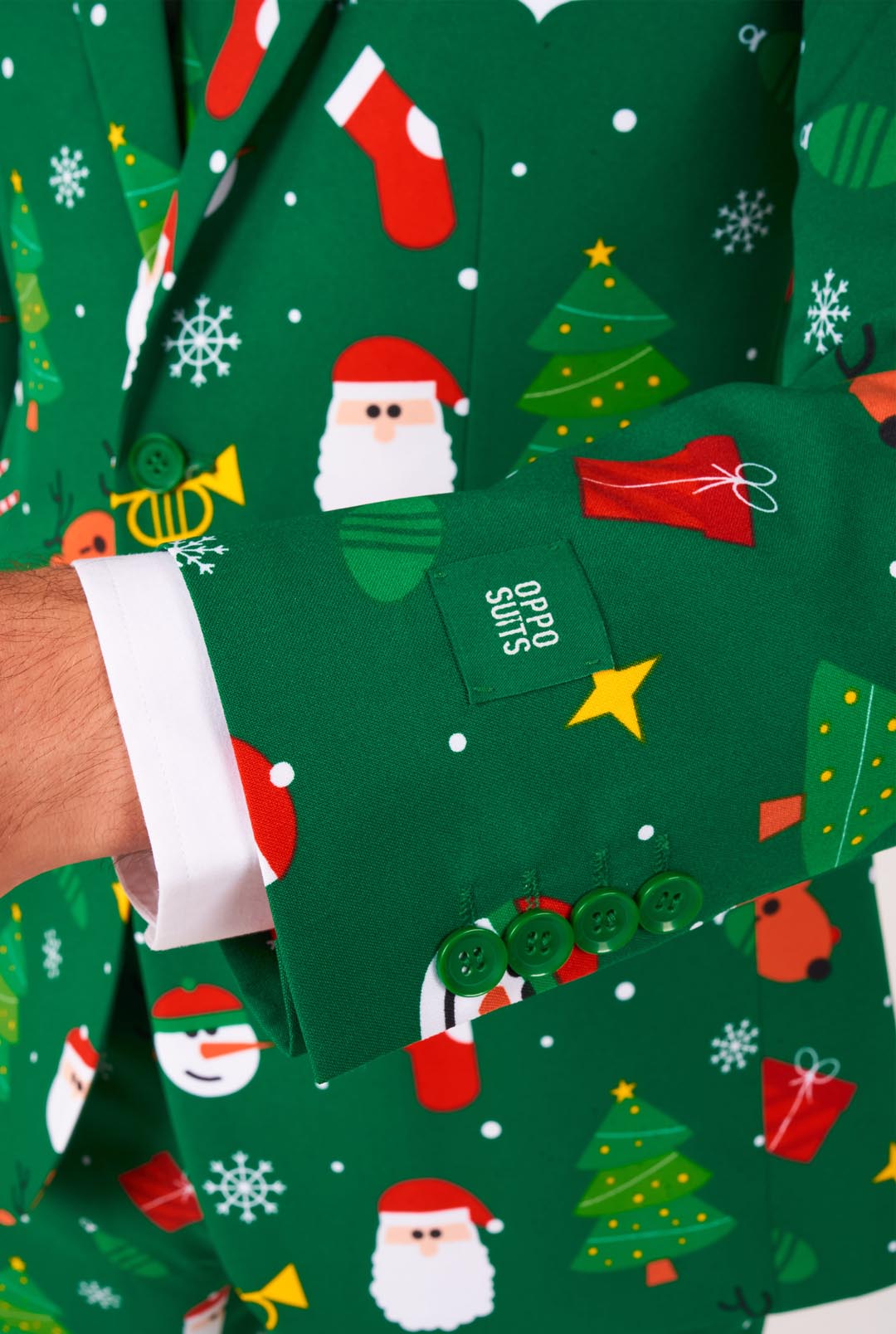 Kerst is ieder jaar weer het meest gezellige en knusse feestje van het jaar. Als je behoefte hebt aan een feestelijke look voor de feestdagen, zoek dan niet verder dan het groene Festivity kerstpak. Het heeft de Kerstman, rendieren, kerstbomen en glinsterende sterren. Het is de meest feestelijke look die je ooit hebt gehad en zal je stevig op de 'brave kinderen'-lijst van de Kerstman zetten als jaarlijkse beloning.
