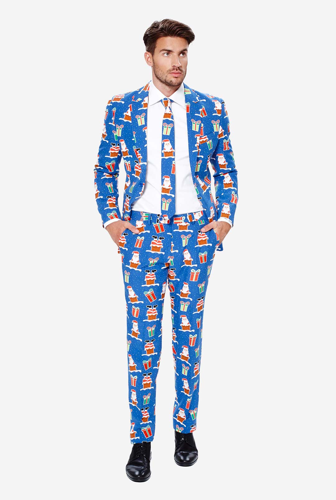 Je hoeft niet langer te zoeken naar het perfecte kerstcadeau dit jaar. Wikkel jezelf gewoon in dit stijlvolle blauwe pak met een kerstcadeaus- en kerstmannenprint en je bent zelf het beste cadeau dat er is. Het is het perfecte item om de show te stelen op elke winterse gelegenheid.