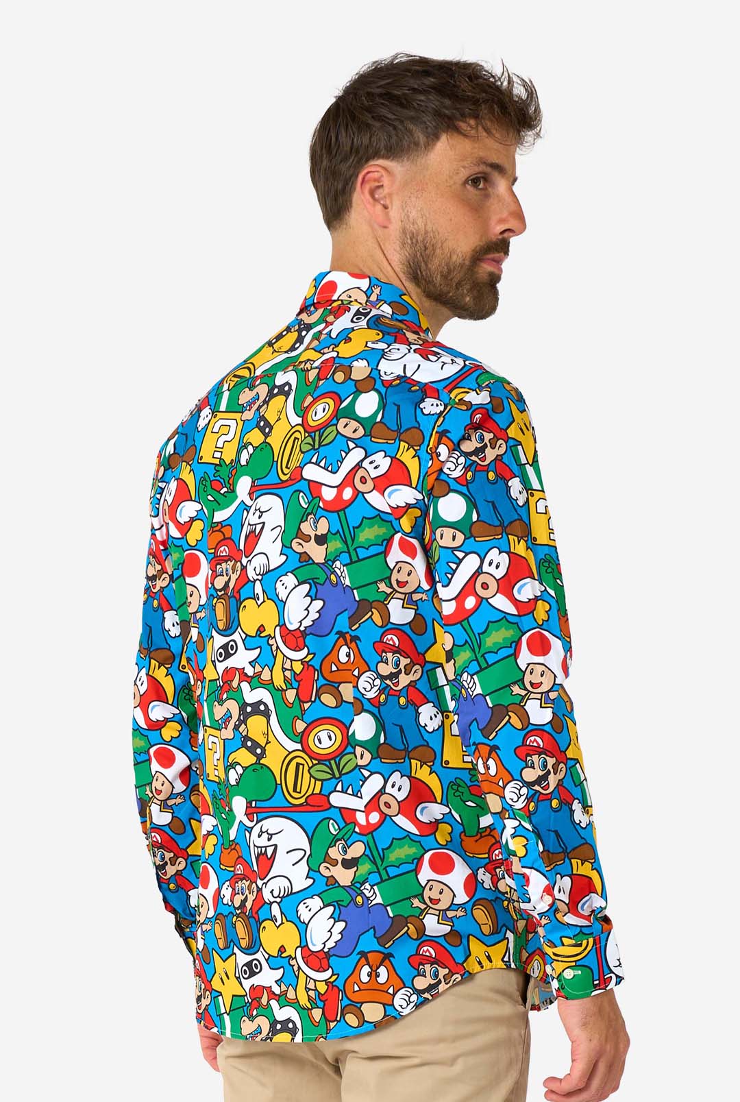Het geweldige Super Mario-pak is nu ook verkrijgbaar als overhemd! Als je je ooit hebt afgevraagd hoe mode in het Mushroom Kingdom eruitziet, dan is dit shirt het antwoord. Een all-over print met alle iconische personages uit de Nintendo-franchise. Geef je garderobe die welverdiende 1-up met dit Super Mario ™-overhemd!