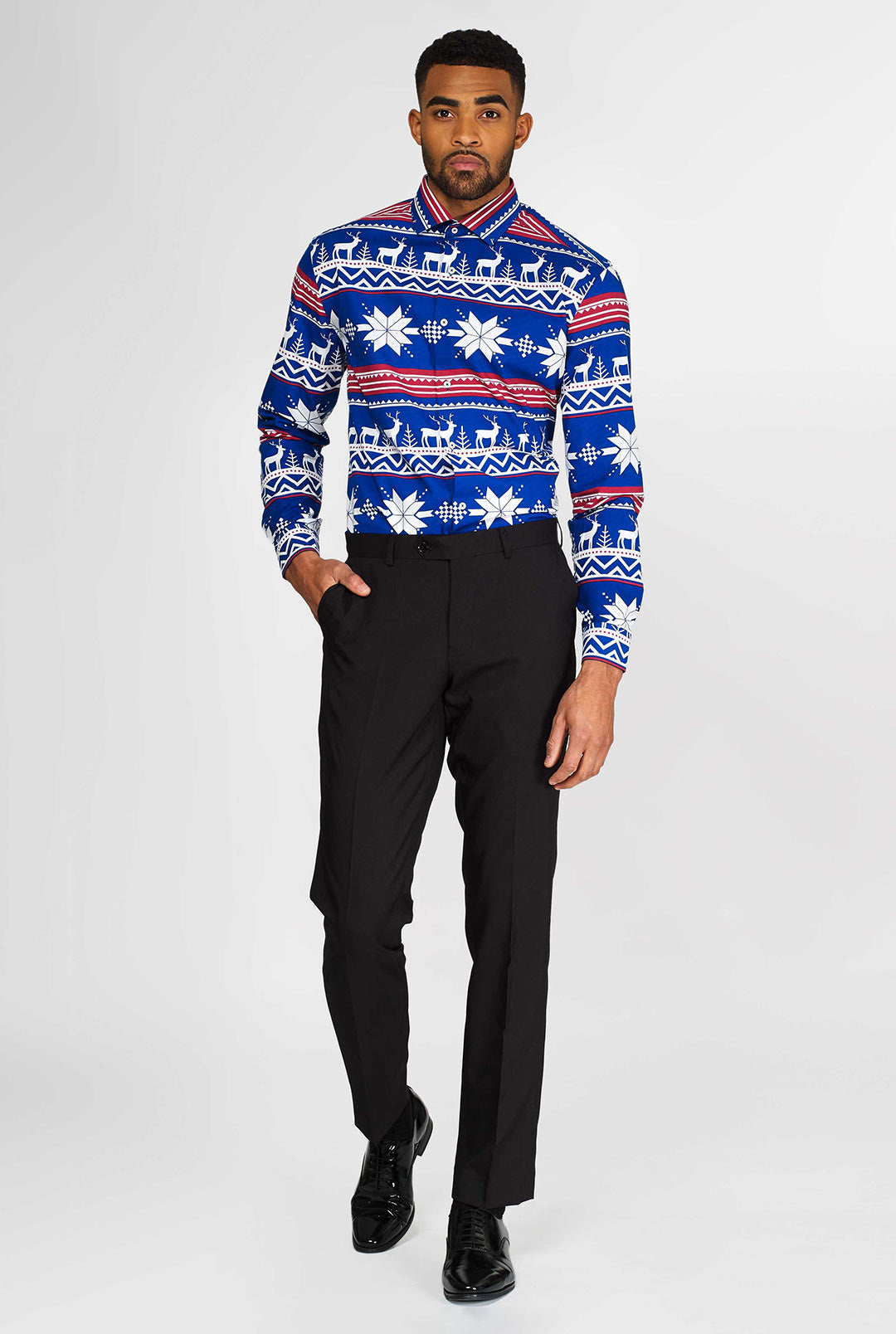 Op zoek naar het feestelijkste overhemd dat jouw kerstoutfit helemaal afmaakt? Dan is dit uitbundige exemplaar jouw must-have voor deze kerst. Hij zal elke outfit, casual of chic, een levendige uitstraling geven. Want het is de perfecte combinatie van fun en fashion en kan gecombineerd worden met bijna elk item dat je in de kast hebt hangen. P.S. Wil je er deze Kerst beter uitzien dan de rest? Er is ook een volledig pak in deze print verkrijgbaar.
