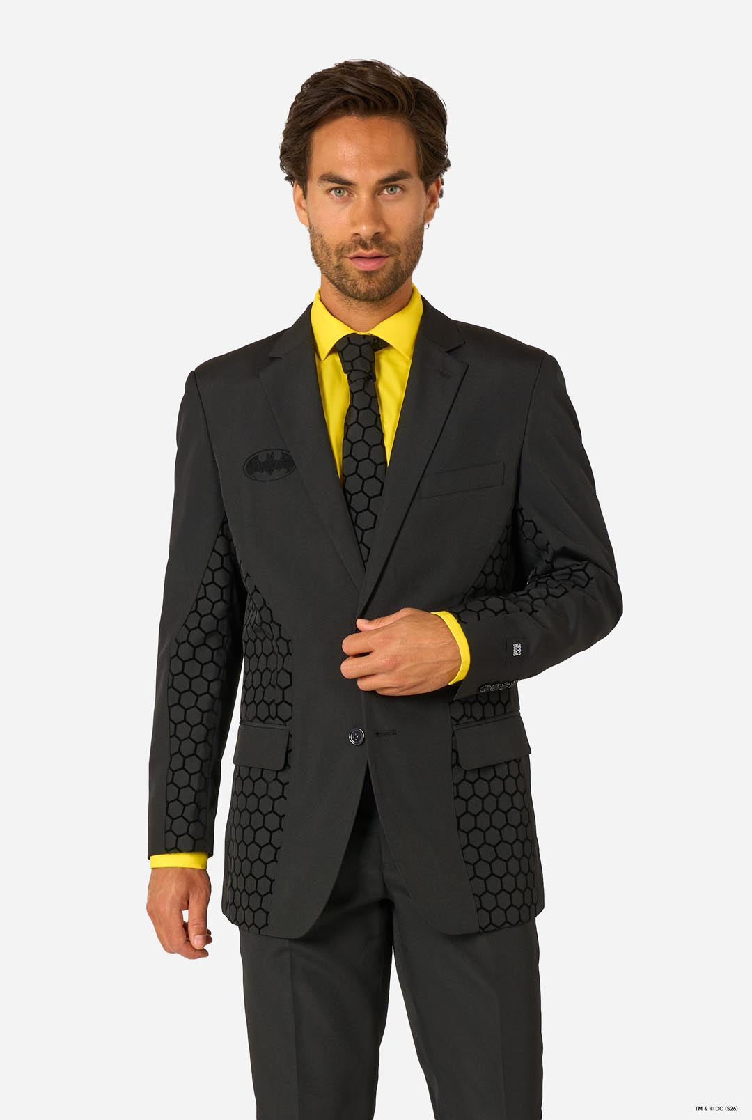 Uit de schaduwen van Gotham komt een pak dat een superheld waardig is. Het officiële Batman-pak is mysterieus en trekt de aandacht zonder een woord te zeggen. Met strakke lijnen en donkere details is het de ultieme hommage aan je favoriete vigilante held.